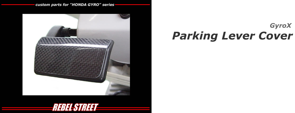 [REBEL STREET] レベルストリート ジャイロX用パーキングレバーカバー(品番:DCR-025C) カーボン仕様 希望小売価格 ¥ 3,410- (税込) ☆ ジャイロX(全車)に装着できます。 ☆ PL法(製造物責任法)賠償保険付製品